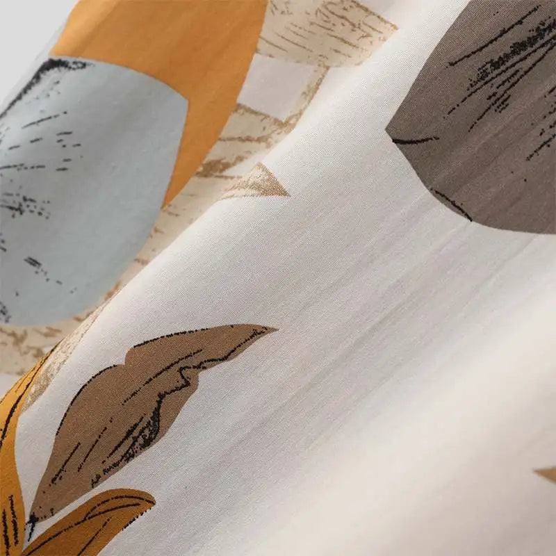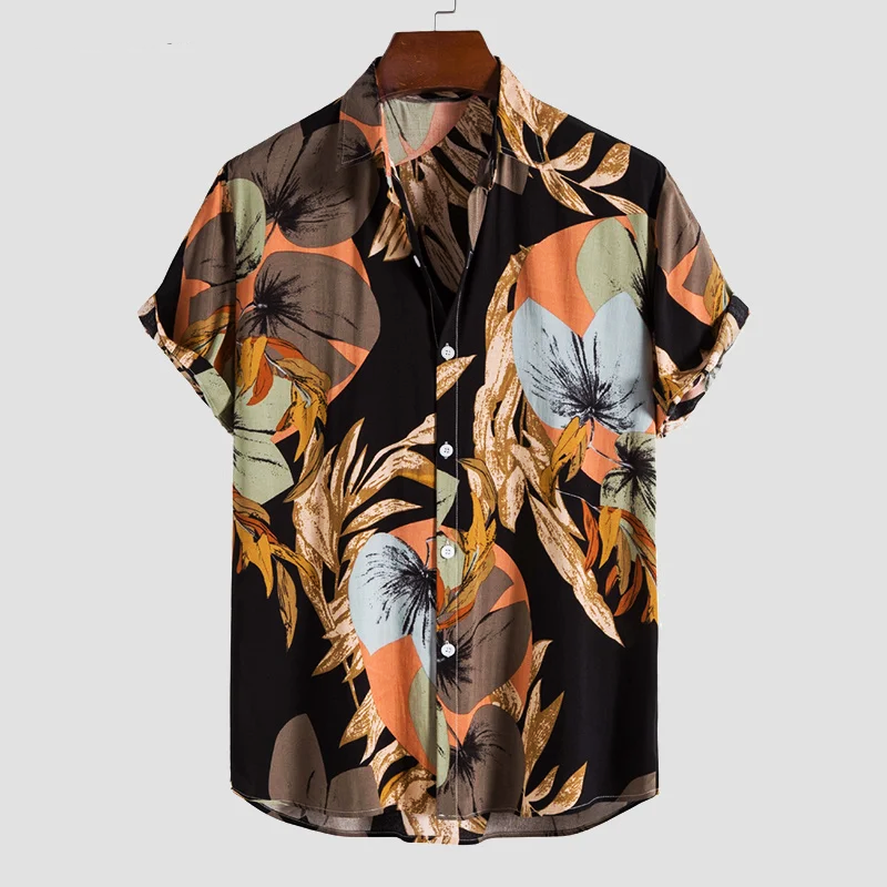 Leafy print in a palette of warm ochres and cool greens pattern evokes a tropical paradise, crafted from pure rayon material this Hawaiian shirt an ideal choice for beach days or casual outings.