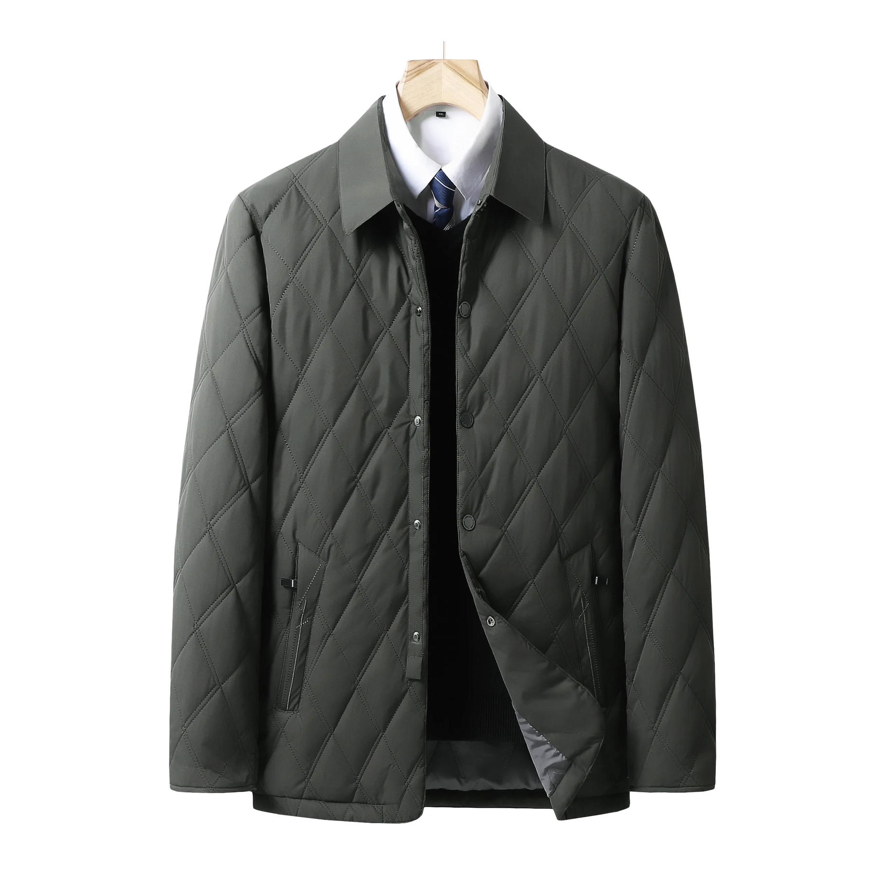 Quilted design that adds structure, paired with a wool exterior for warmth, this jacket features a tailored fit with a refined blazer-style silhouette, making it perfect for any occasion. Lightweight yet functional, it seamlessly transitions from casual to professional settings, keeping you stylish and warm no matter the weather.