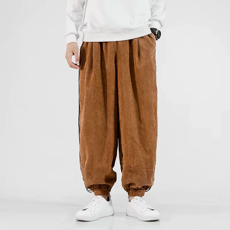 Streetwear-inspired relaxed fit these joggers are crafted from a soft velour corduroy blend for a premium feel. The elastic waistband and adjustable hems ensure all-day comfort and a customizable fit, perfect for laid-back or layered looks.