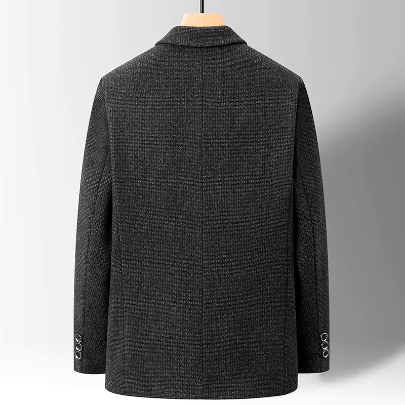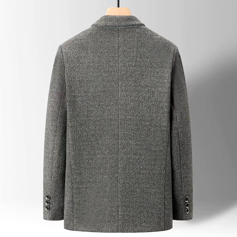 Premium wool with a textured finish for a polished, modern look, combined with lightweight breathable fabric for effortless comfort. Designed with a tailored fit, this blazer ensures a sharp silhouette, perfect for commanding the room in any business setting.
