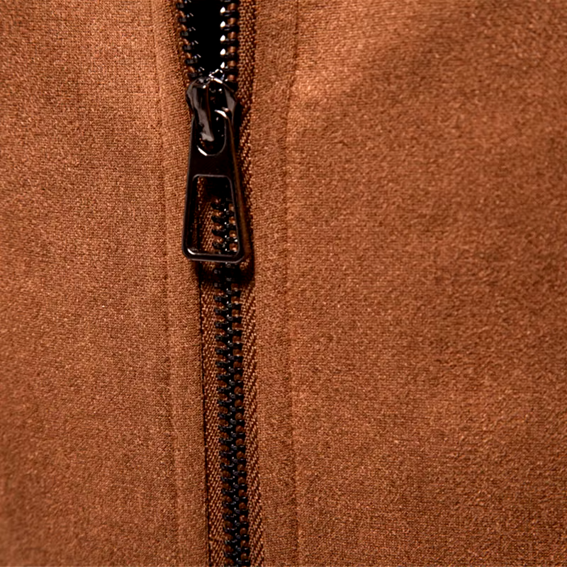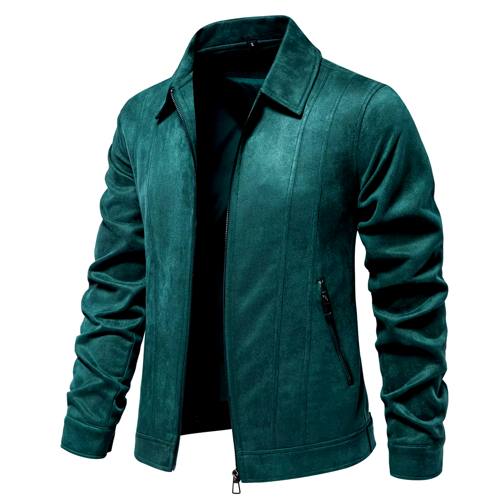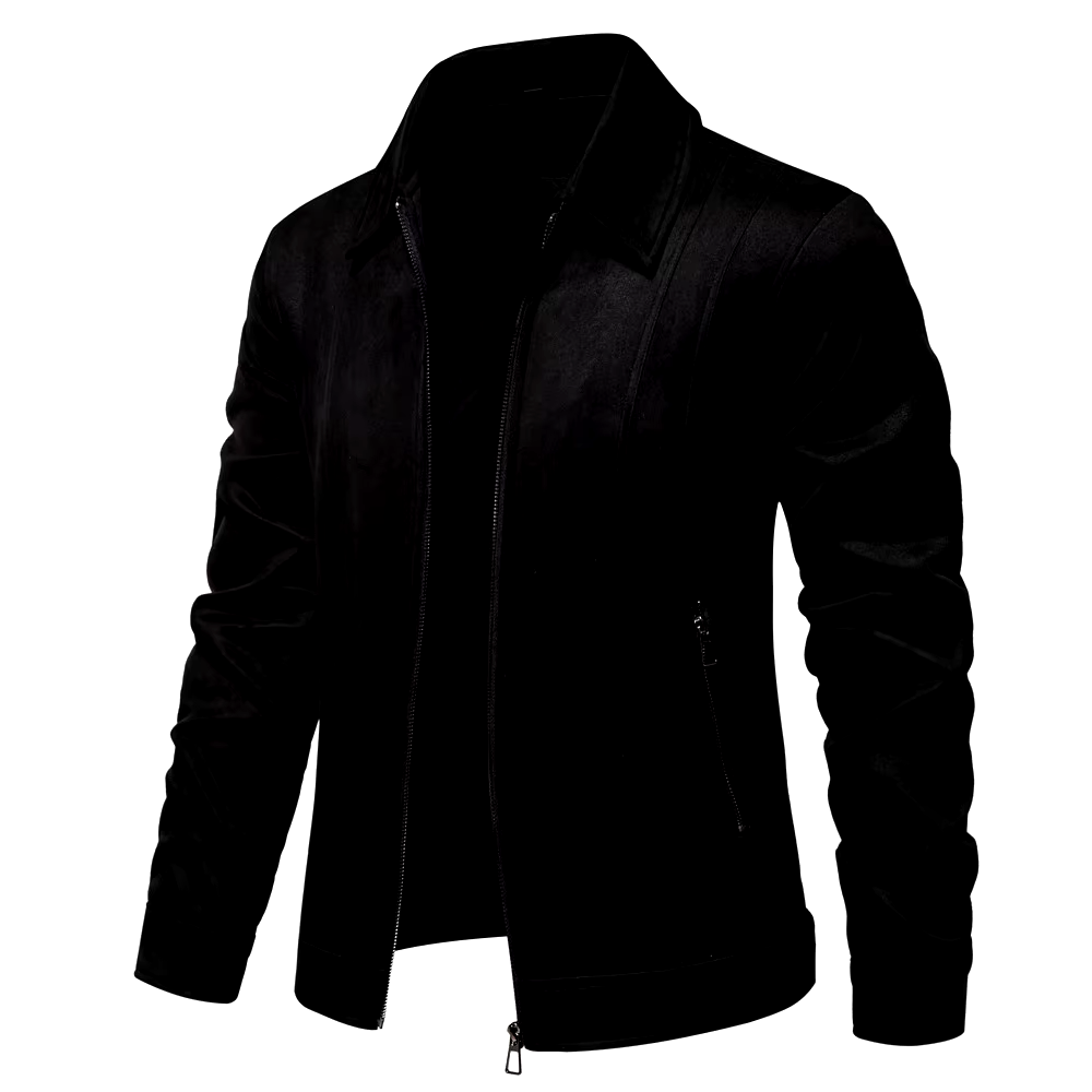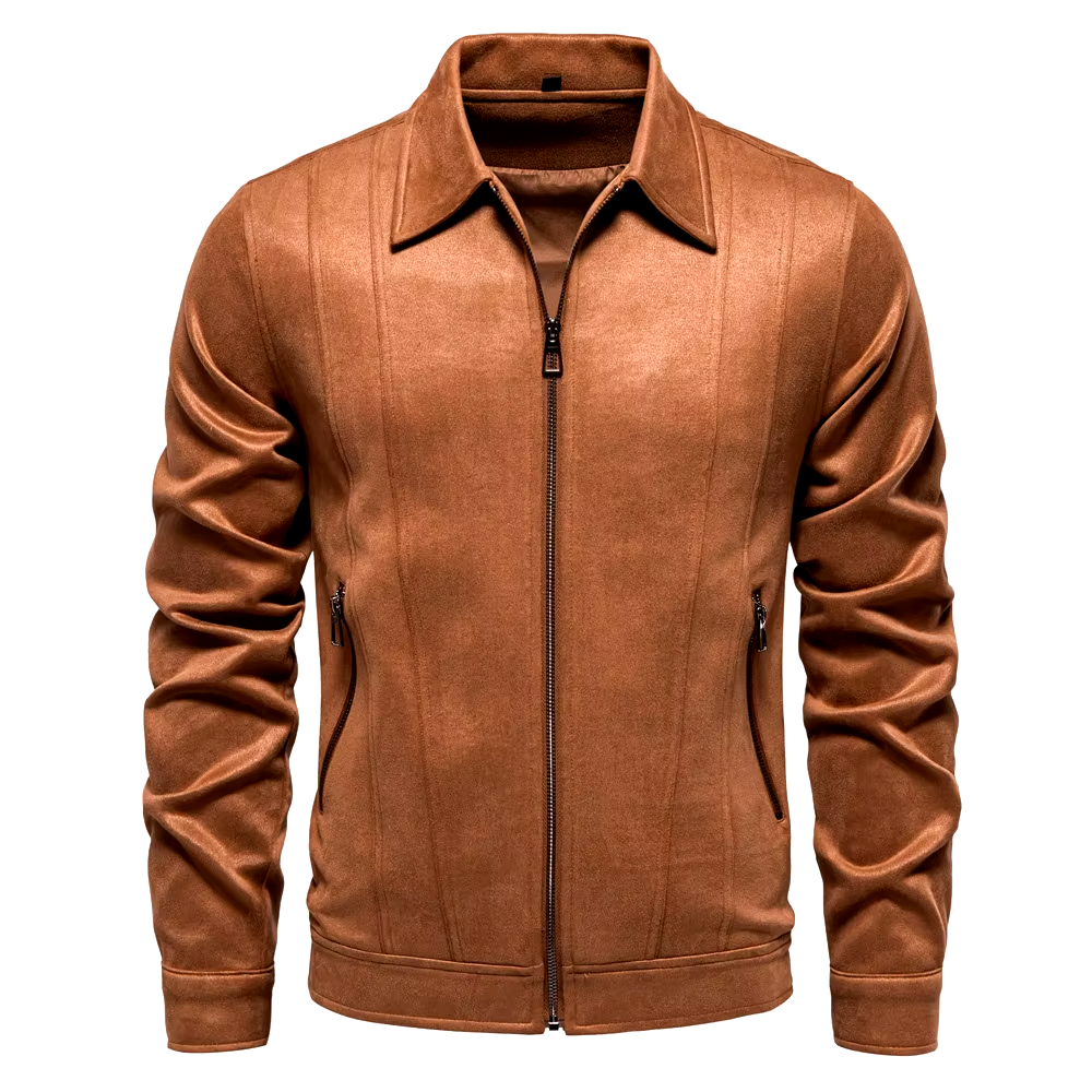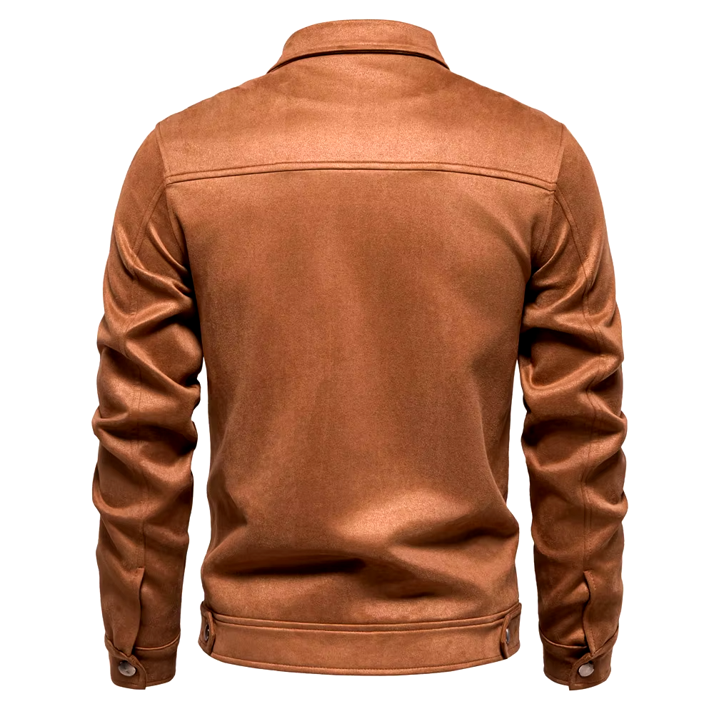 Structured seams for a tailored fit, paired with a sleek zip-up front, make this suede trucker jacket a must-have for a rugged, timeless style. Perfect for men who appreciate classic outerwear with a modern edge.