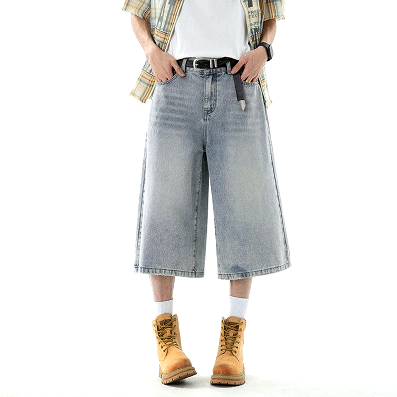 Bold mid-calf, wide-leg cut brings a street-ready vibe, while the distressed finish adds a perfectly worn-in Y2K edge. Pair this with tees or oversized hoodies for your go-to streetwear look.