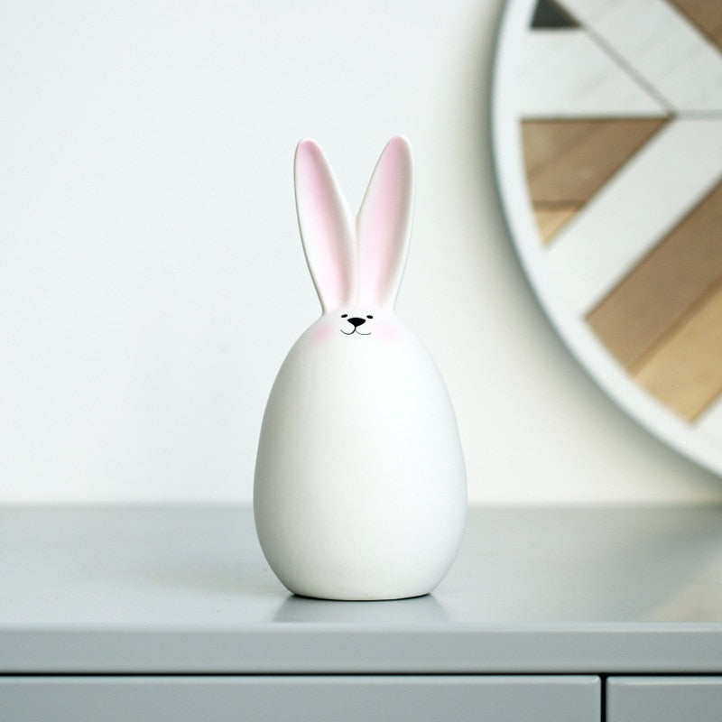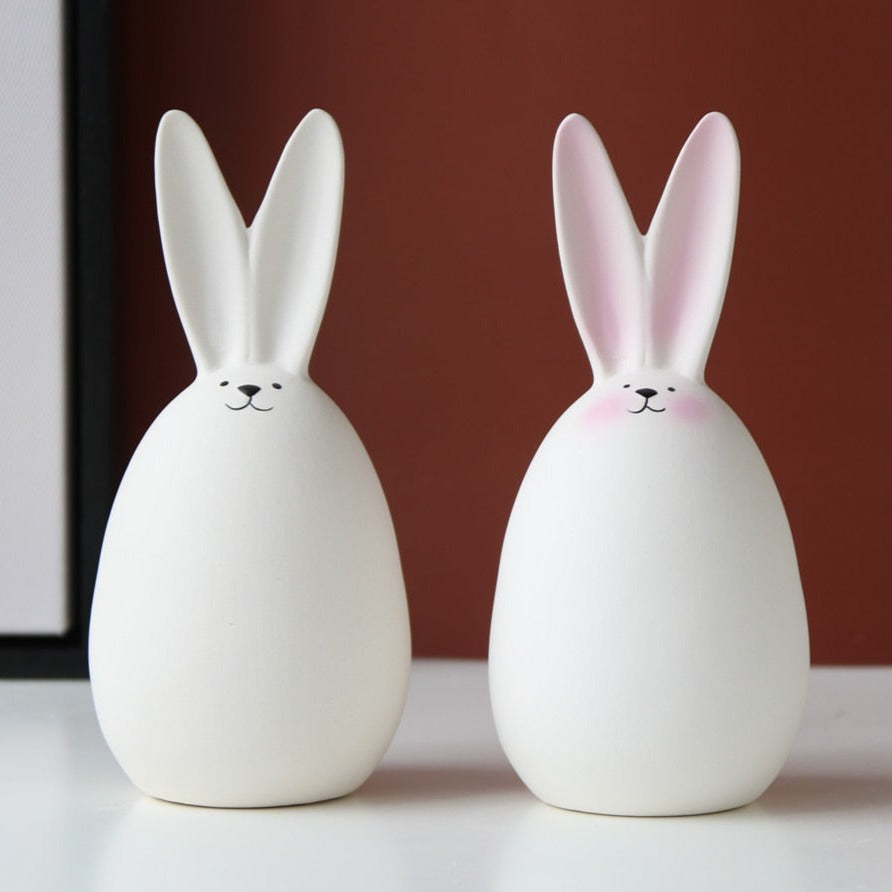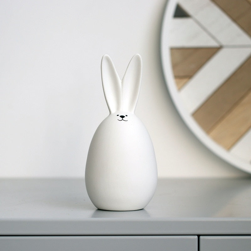 Bring some whimsical charm to your living space with these handmade white rabbit figurines. Made from high-quality ceramic, these adorable bunny statues make a perfect desk or living room ornaments. Add a touch of personality to your home decor with these cute and modern decorations.