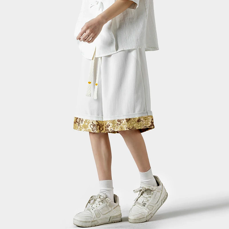 With a cool dragon design at the hem, these comfy cotton shorts are perfect for making a statement on the streets.