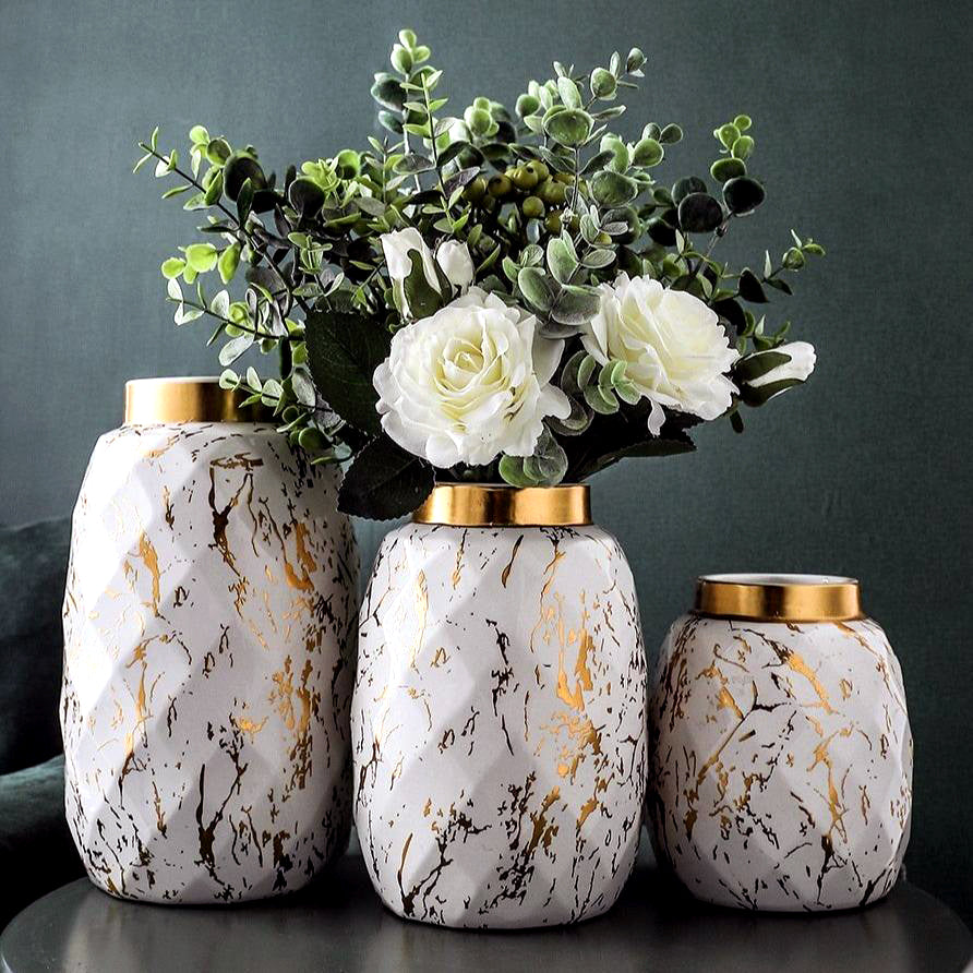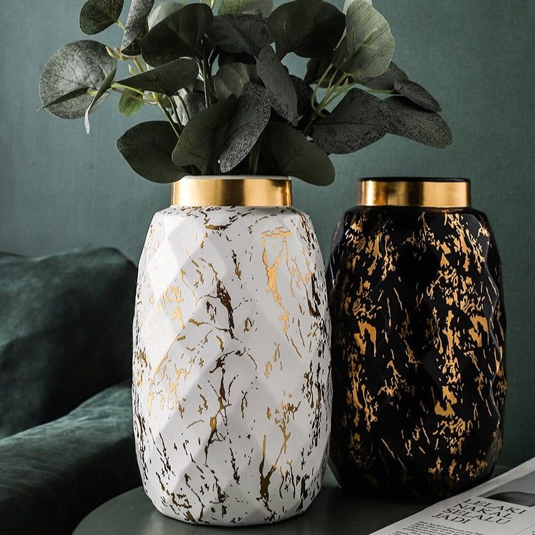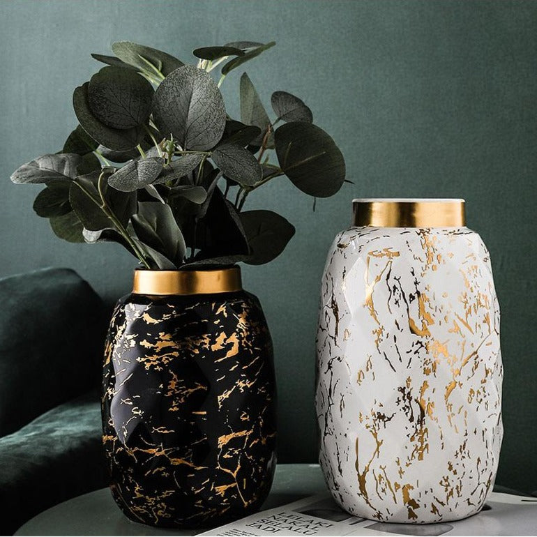 Effortlessly infuse your décor with a touch of glamour with our Elysian Gilded Ceramic Vase. With a lustrous gold engraved marble pattern & gleaming gilded trim, this luxe vase offers an elegant way to display your favorite flowers & sure to draw plenty of compliments.
