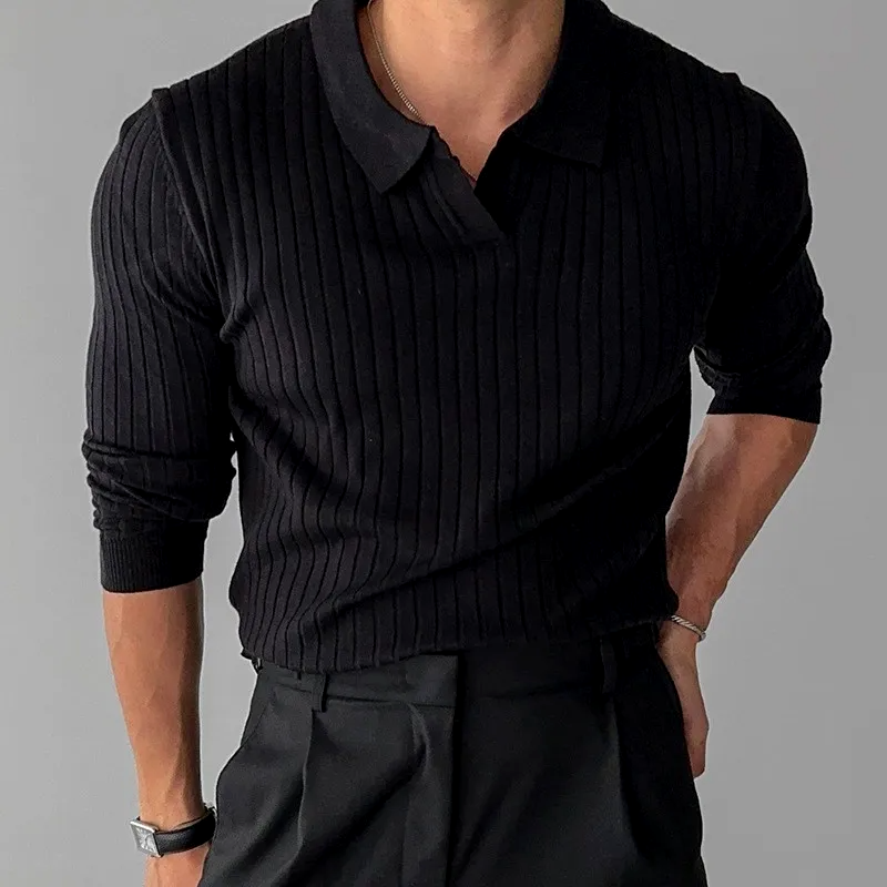 Knit design meets 90s vibes in this cotton-linen blend polo with a V-neck. Its relaxed fit and ribbed texture make it perfect for both casual outings and sophisticated gatherings.