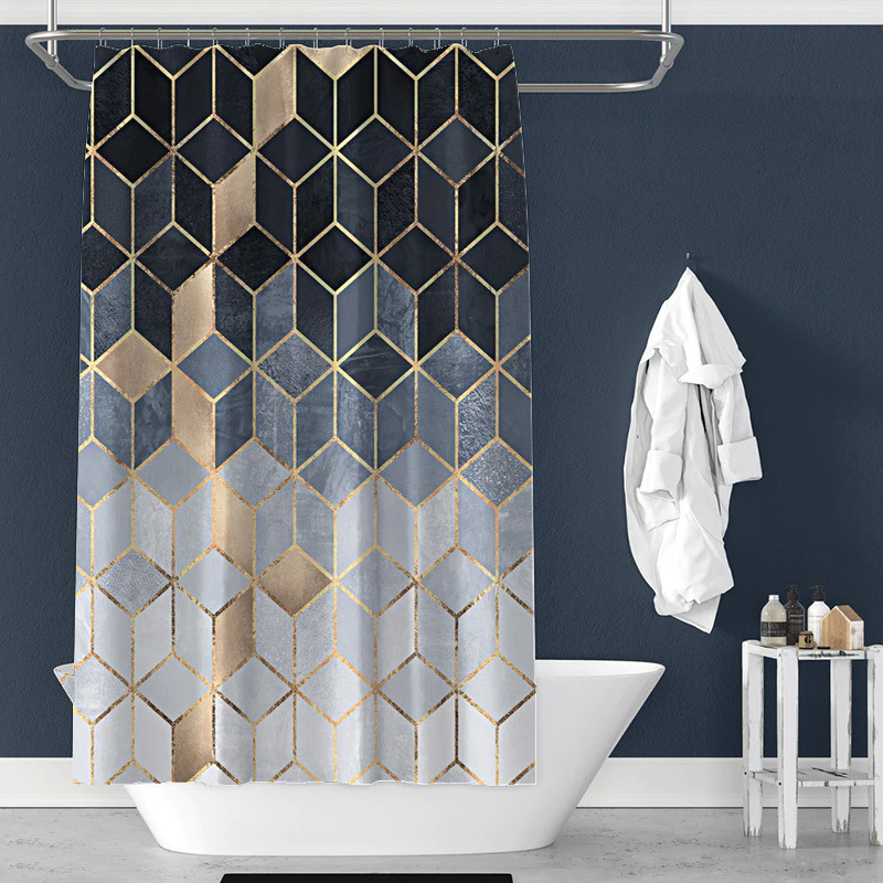 Add a touch of modern luxury to your bathroom décor with this beautiful & elegant Lux Gradient Shower Curtain. Featuring a dynamic unique gradient color with luxurious golden cube pattern linings, it's the perfect focal point for your monochromatic space while adding texture and visual interest to the bath.