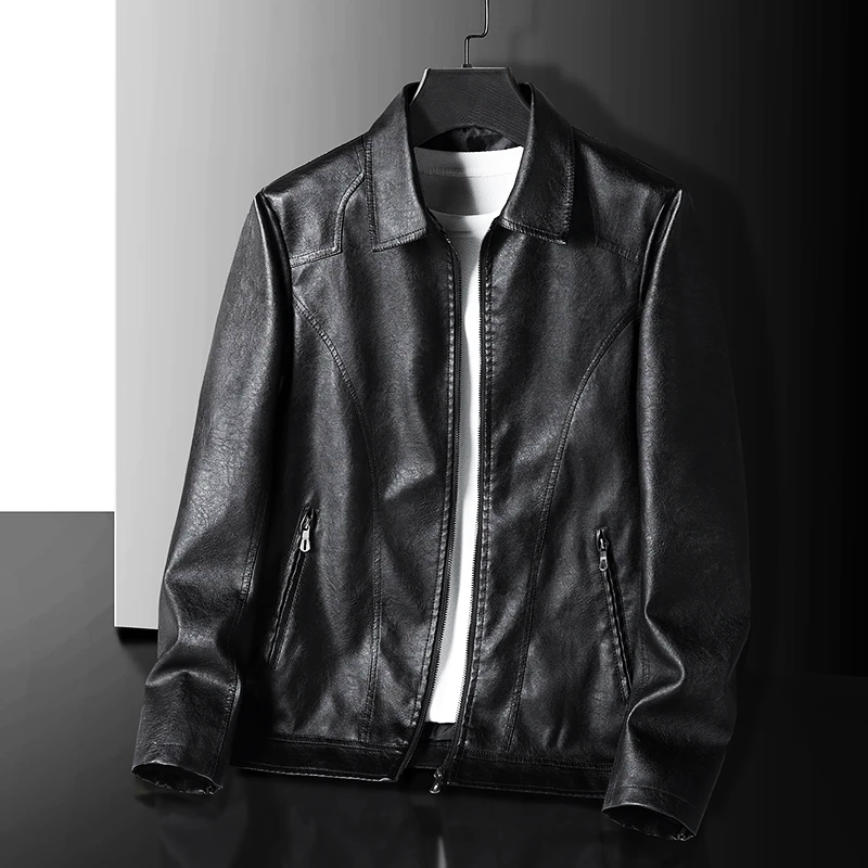 Sleek vintage-inspired leather jacket perfect for casual riders, featuring a smooth leather exterior with a timeless design to complement any outfit. Specially proportioned to ensure a comfortable and flattering fit for big & tall individuals.