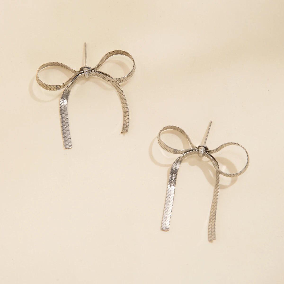 Classic bow-shaped earrings designed to symbolize remembrance and the bonds of relationships, while ribbed detailing adds an element of elegance and complexity to these perfect everyday earrings.
